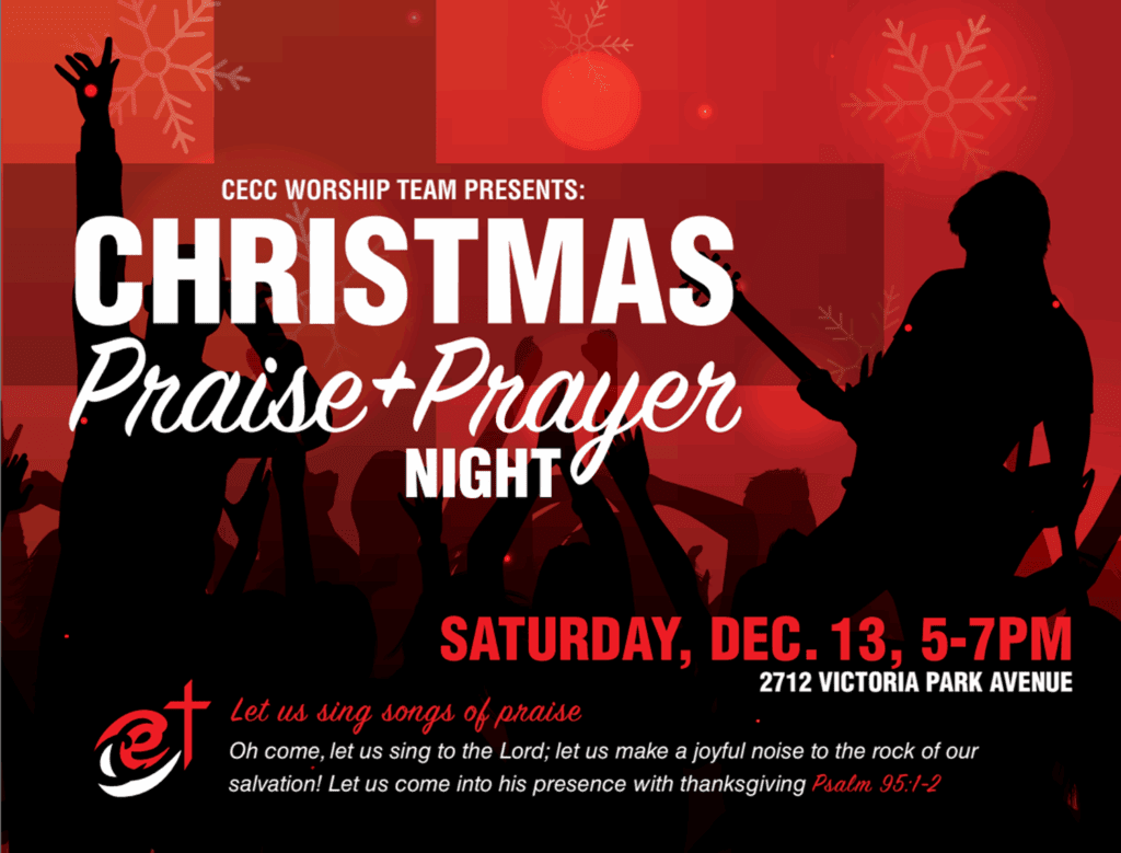 We are excited to share that our Christmas event this year is a Praise and Prayer Night, presented by the CECC worship team.